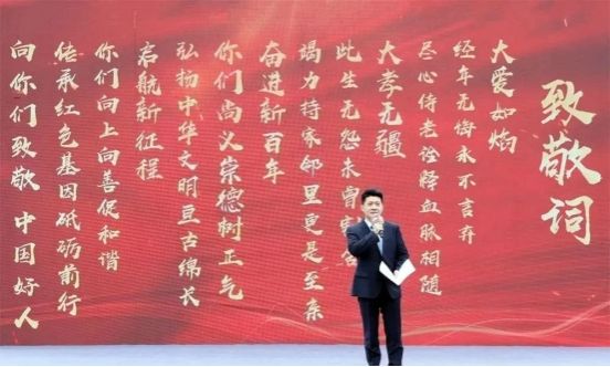 活動(dòng)現(xiàn)場(chǎng)由國(guó)家一級(jí)演員孫星宣讀給“中國(guó)好人”的致敬詞。周勝武 攝
